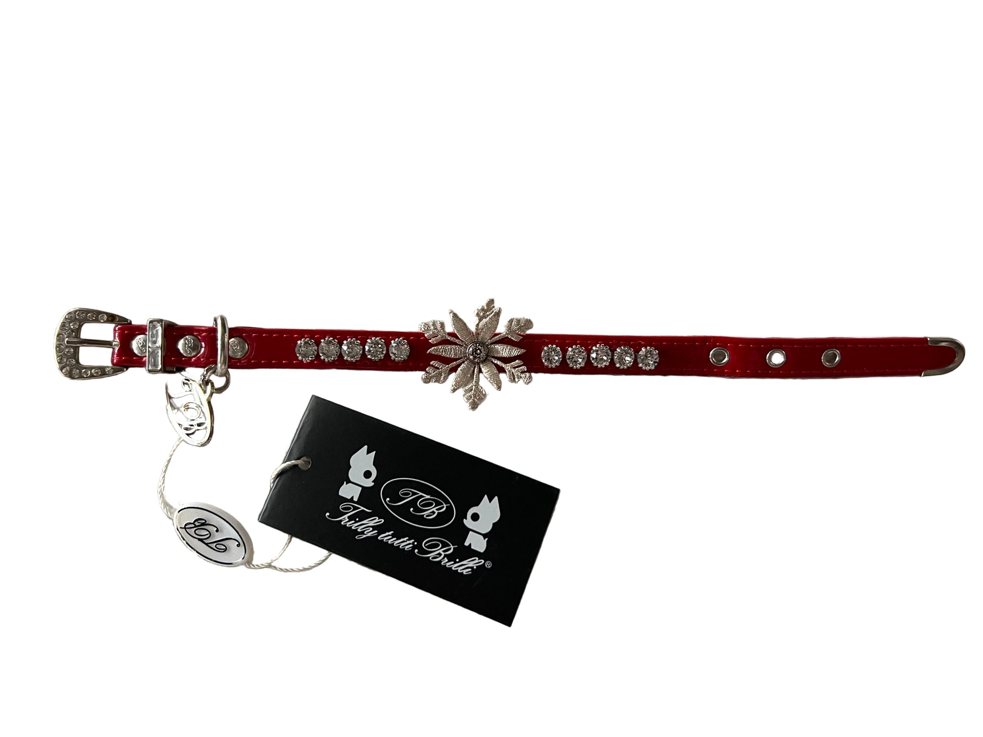 COLLARE ECOVERNICE ROSSO , con catena Swarovski e un prezioso fiocco di neve con Swarovski centrale