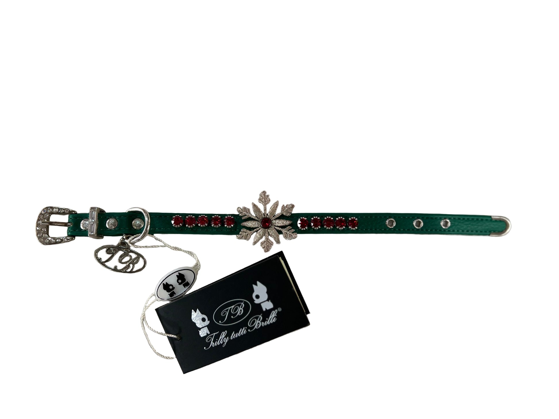 COLLARE ECOPELLE Verde con fiocco di neve e catena Swarovski Rossa